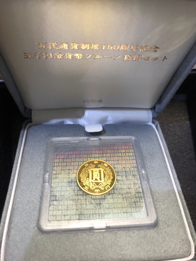買取実績ブログ【心斎橋店】近代通貨制度150周年記念5千円金貨幣7.8g 買取!